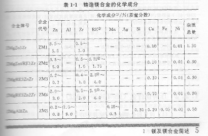 鑄造鎂合金牌號和化學(xué)成分(見表1-1)